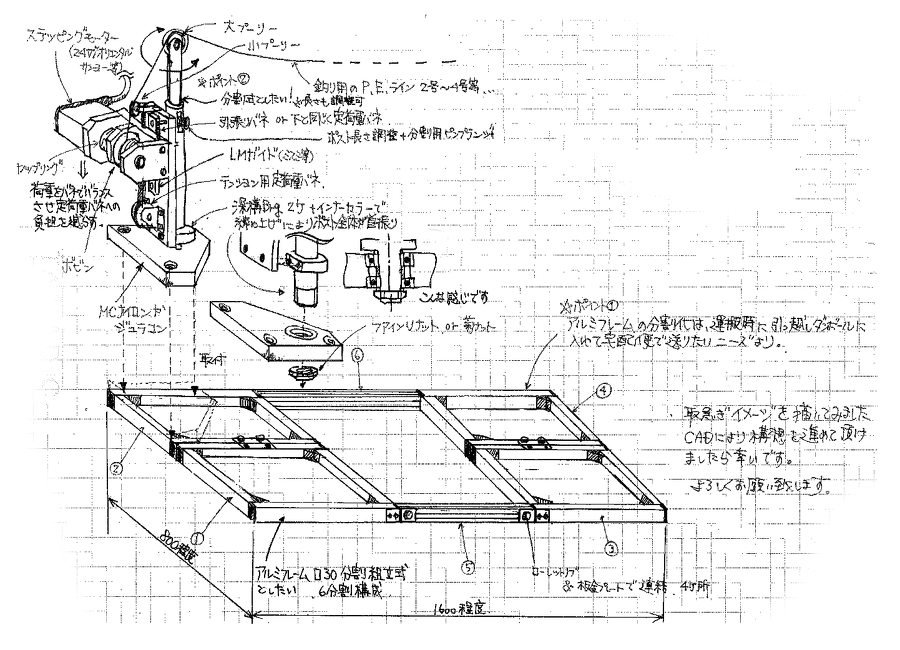 具体的には、安全性、作業性、保守性なども考慮しながら、採用する技術のアイデアを決め、構想図に落としていきます。アイデア出しではポンチ絵などを使って、イメージを共有することが有効です。